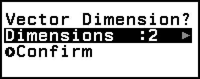 This displays the vector dimension setting screen (initial default setting: 2 dimensions).