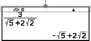 | i/∠ | Current setting of Complex Result (i : a+bi or ∠: r∠θ) on the SETTINGS menu. |