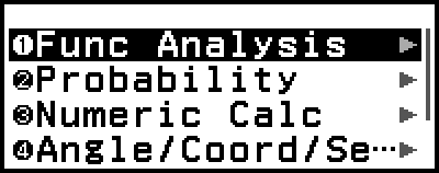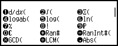 to display the CATALOG menu like the one shown below. This menu shows categories of the commands, functions, and symbols in accordance with the calculator app you are currently using and the current status (displayed screen or current settings) of the app.