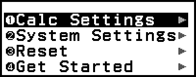 See "Items and Available Setting Options" for the setting items included for [Calc Settings] and [System Settings].