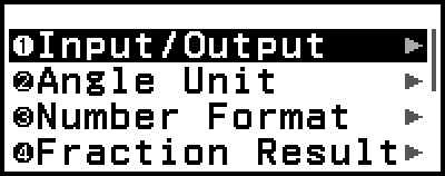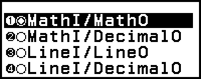 Each press of toggles the displayed calculation result between a form that includes fraction/π/√ and decimal form. Press ![]() ( ) to display the FORMAT menu. |