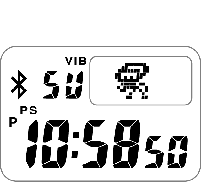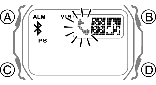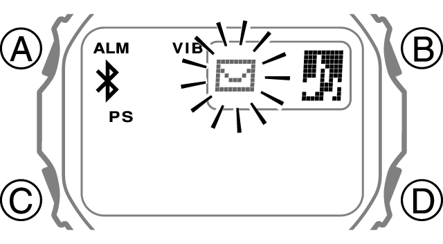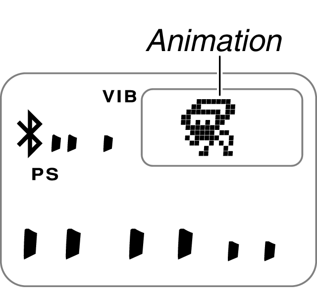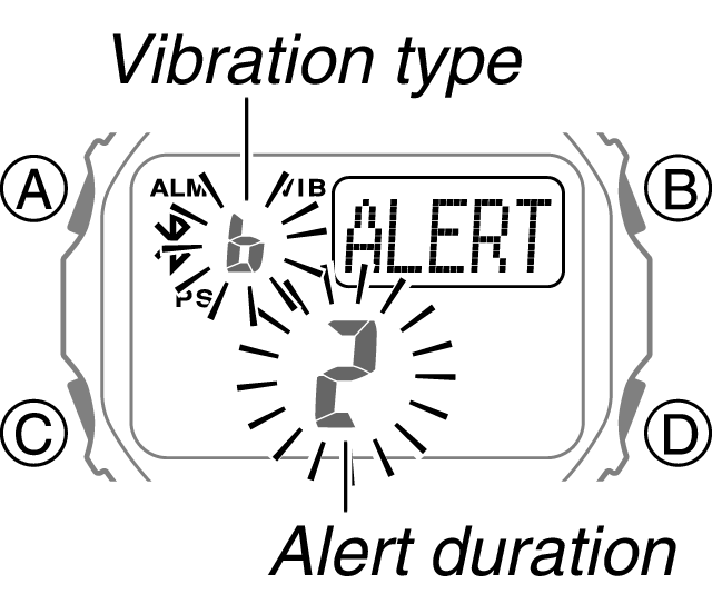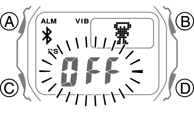Each press of B cycles through the vibration type settings in the sequence [A], [b], [C]. After you change these settings, the watch will perform a demo vibration in accordance with your changes.b. Animation display on/off b.