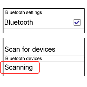 - Tap [Scan for devices] and confirm that the message "Scanning" appears on the display.
