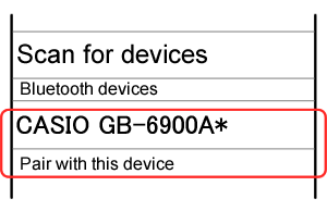 - On the list of Bluetooth devices that appears, touch and hold "CASIO GB-6900A*" and then tap [Unpair].