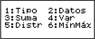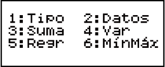 (STAT) para entrar al modo STAT y luego, desde la pantalla que aparece, seleccione el tipo de cálculo que desee realizar.