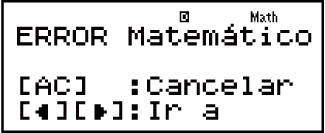para volver a la pantalla de cálculo. El cursor se posicionará en el lugar donde el error ocurrió, listo para una introducción. Haga las correcciones necesarias al cálculo y vuelva a ejecutarlo.