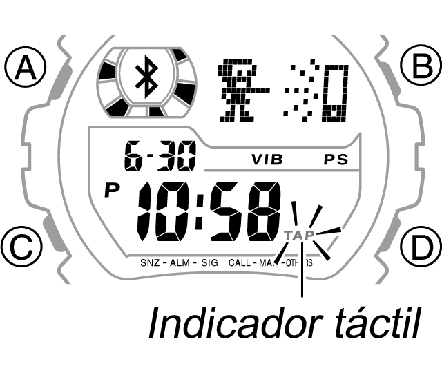 - En el modo de indicación de la hora, mantenga pulsado el botón D durante aproximadamente un segundo.