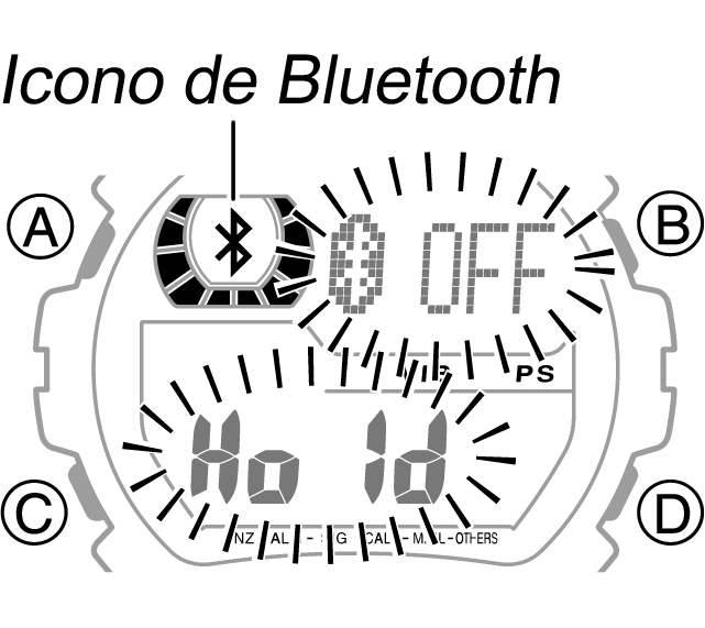 Cuando esté en un hospital, en un avión o en cualquier otro lugar en el que estén prohibidas las señales de radio, puede desactivar la emisión de señales manteniendo pulsado el botón B durante unos dos segundos en el modo de indicación de la hora. Esto también hace que el icono de Bluetooth desaparezca de la pantalla del reloj.
