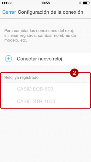 2Toque en el nombre del modelo del reloj cuyo registro de emparejamiento desee borrar del apartado "Reloj ya registrado".