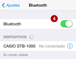 4Toque el botón de inicio para volver a la pantalla de inicio y, a continuación, toque los siguientes elementos en orden para activar la conexión Bluetooth: "Ajustes" - "Bluetooth".