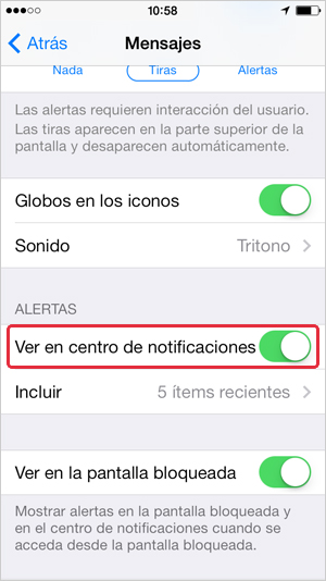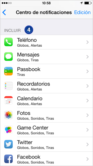 4Utilice los siguientes ajustes del iPhone para activar o desactivar las notificaciones: