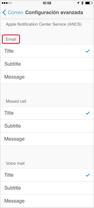 1Configure los ajustes que aparecen a continuación para controlar cómo se envían los tipos de notificación al reloj.