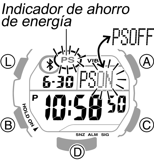 El ahorro de energía se activa si no se mueve el reloj y no se utiliza ningún botón durante aproximadamente dos horas. A continuación se explica qué ocurre mientras el reloj está en modo de ahorro de energía.