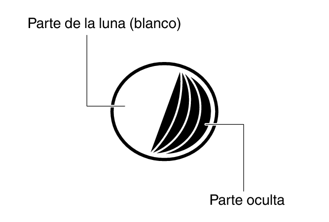 La fase lunar que muestra el gráfico de fase lunar es la forma aproximada de la luna al mediodía en la fecha que aparece. Su única finalidad es indicar si está oculta la cara izquierda o derecha de la luna. Su forma es diferente de la fase real de la luna.