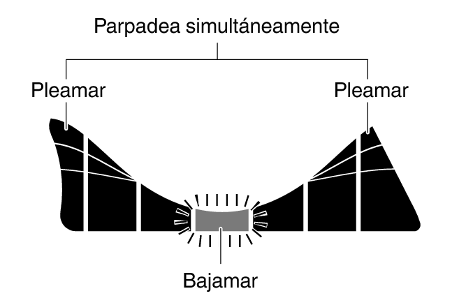 El gráfico de mareas de la hora actual y el gráfico lunar (fase lunar) de la fecha actual se muestran en los siguientes modos.