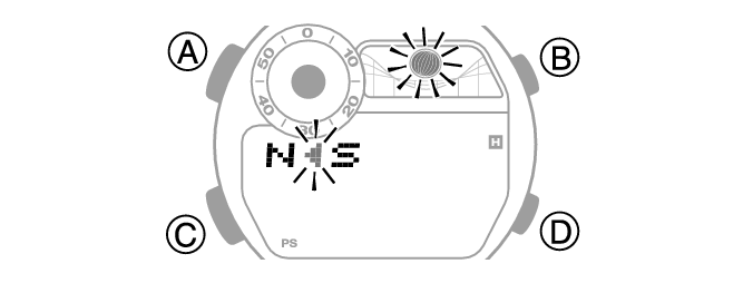 Mantenga pulsado (A) durante al menos dos segundos. Suelte el botón cuando el ajuste de hora de la hora de pleamar del gráfico de mareas comience a parpadear.
