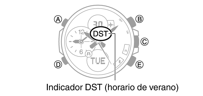El reloj cambia entre la hora estándar y el horario de verano automáticamente.