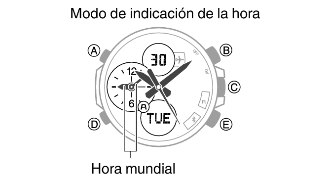 Realice este procedimiento en el modo de indicación de la hora. Utilice (D) para navegar al modo de indicación de la hora.