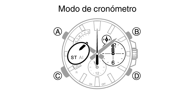 Realice este procedimiento en el modo de cronómetro. Utilice (A) para navegar al modo de cronómetro.