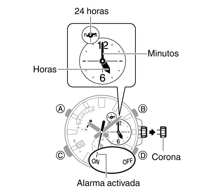 2.Gire la corona para cambiar la configuración de la hora de la alarma.