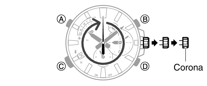 Esto provocará que el segundero lleve a cabo una revolución y sus ajustes regresen a los valores predeterminados de fábrica.