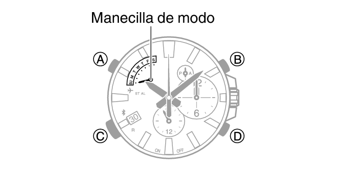5.Gire la corona para alinear la manecilla de modo con SU.