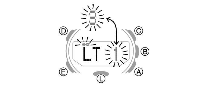 Al mantener pulsado (L) durante al menos tres segundos en el modo de indicación de la hora, se activa y desactiva la función de luz automática.