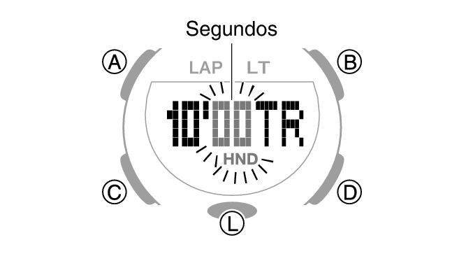 Utilice (B) y (D) para cambiar el ajuste de los segundos.