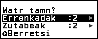 4. Bistaratzen den “Matr tamn?” pantailan, zehaztu matrizeko errenkada eta zutabe kopurua.