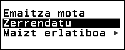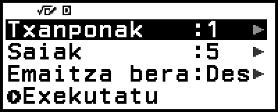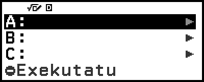 – [A=] > [Gorde]. Aldagaiei buruzko xehetasunak lortzeko, ikusi “Aldagaiak (A, B, C, D, E, F, x, y, z)”.