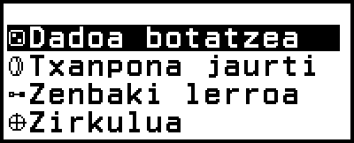8. Zirkulua aukeratik ateratzeko, bistaratu parametroak sartzeko pantaila eta, ondoren, sakatu