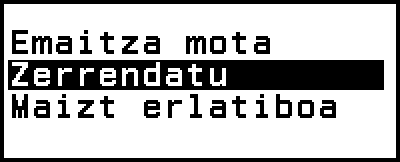 Horrek [Batura] edo [Aldea] hautatzeko menua bistaratzen du.