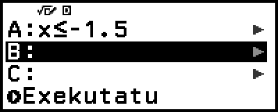 Adibidea: C lerroko adierazpena aldatzeko (-2,0<x≤-0,5) hona: -1,5<x≤0,5