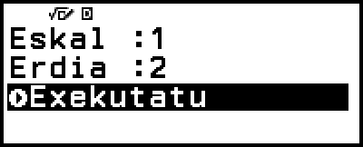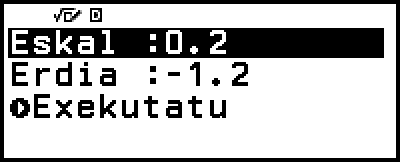 Adibidea: x ardatzaren Eskala ezarpena “1” aukerara eta Erdia ezarpena “2” aukerara aldatzeko eta zenbaki lerroaren grafikoa bistaratzeko