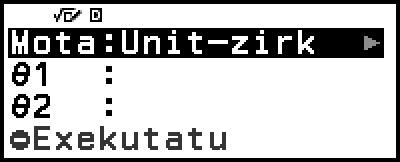 Angeluaren balioa sartzeko, hautatu honako unitateetako bat: Gra hirurog (D), Radiana, Gra ehundar (G). Ikus “Kalkulagailuaren konfigurazioa aldatzeko”.