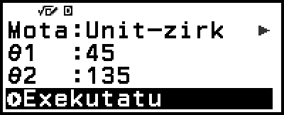 Zirkulua: Zirkuluak Unit-zirk edo Zirk erdia grafikoa erabiltzen du angelua eta balio trigonometrikoak bistaratzeko. Halaber, Erlojua erabil dezakezu angeluak bistaratzeko.