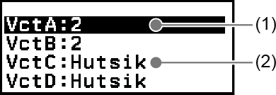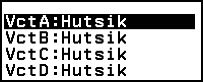 Erabili bektore aldagaien zerrendaren pantaila bektoreak VctA, VctB, VctC, edo VctD bektore aldagaietan gorde nahi dituzunean edo aurretik gordetako bektoreak editatu nahi dituzunean. Bektore bakoitzaren egoera ondorengo adibideetan erakusten den moduan adierazten da.