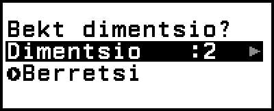 4. Agertzen den “Bekt dimentsio?” pantailan, zehaztu bektorearen dimentsioa.
