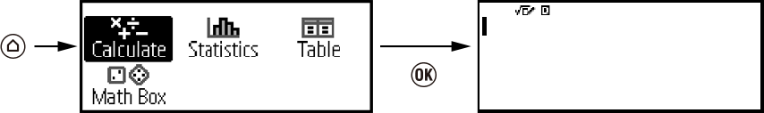 | HOME-näyttö | Calculate-sovelluksen näyttö |