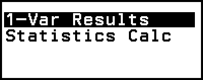 ja valitse sitten [1-Var Results]. Palaa tilastolliseen laskutoimitusnäyttöön 1-Var Results-näytöltä painamalla