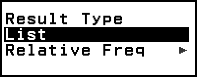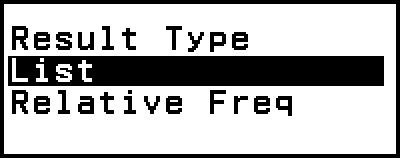 Tässä näytetään esiintymien lukumäärä ja suhteelliset frekvenssit, joten valitse [Relative Freq] ja paina sitten