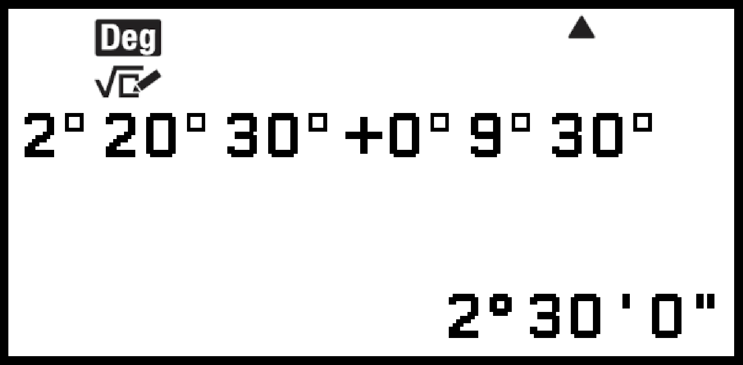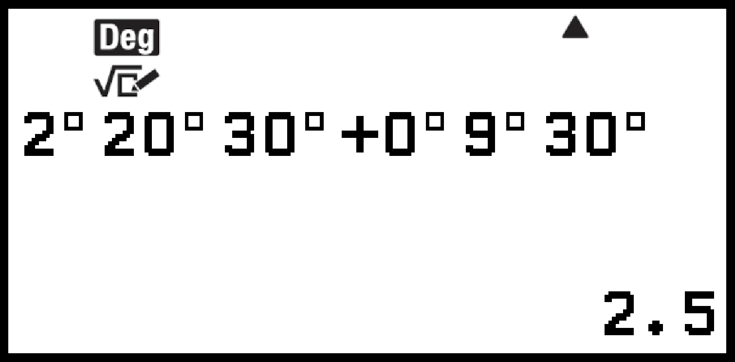 Exemple : Pour effectuer le calcul 2°20’30” + 9’30”. Ensuite, convertissez le résultat de calcul en valeur décimale.
