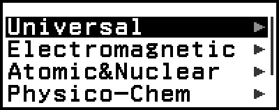 Cela affiche un menu de constantes scientifiques dans la catégorie Universal.