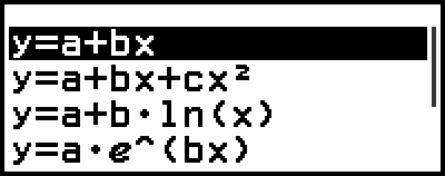 Dans l’exemple ci-dessus, utilisez le menu affiché pour sélectionner [y=a+bx] (Régression linéaire).