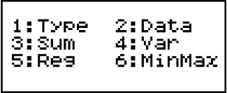 (STAT) afin de saisir le Mode STAT et utilisez ensuite l'écran affiché pour sélectionner le type de calcul que vous désirez effectuer.