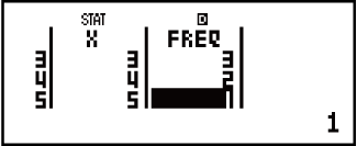 Utilisez la colonne FREQ (fréquence) pour saisir la quantité (fréquence) de données identiques. L'affichage de la colonne FREQ peut être activé (affiché) ou désactivé (non affiché) au moyen du paramètre de format Stat dans le menu de paramétrage.