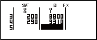 Toutes les données actuellement saisies dans l'éditeur statistique sont supprimées chaque fois que vous quittez le Mode STAT, que vous basculez entre un type de calcul statistique à variable unique et à variable double ou que vous modifiez le paramètre de format Stat dans le menu de paramétrage.