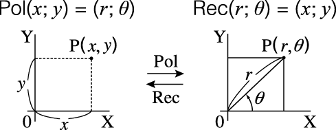 Le résultat de calcul pour r et θ et pour x et y sont tous respectivement affectés aux variables x et y.