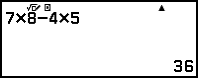 Utilisez les touches , , , et pour effectuer des calculs arithmétiques. Exemple : 7 × 8 − 4 × 5 = 36 7845