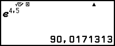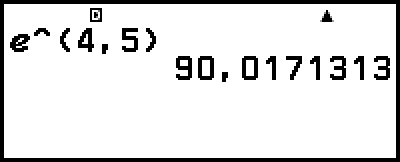 Utilisez ou – [Autre] > [e^] pour entrer « e□ ». Exemple : e4,5 = 90,0171313 (Saisie/Résultat : Smaths/Rmaths) 45 (Saisie/Résultat : Sligne/Rligne) 45